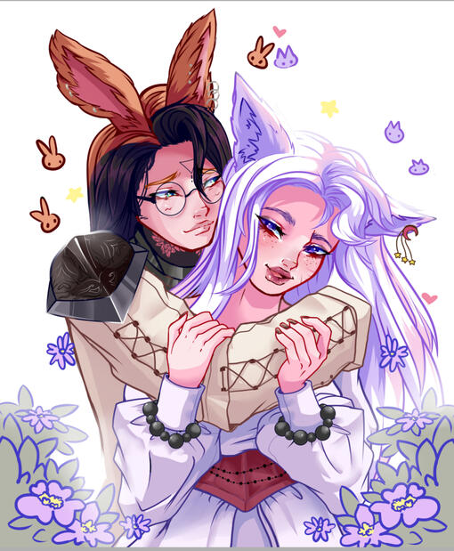 . Past . Ever since she was a child, the young Miqo’te had the feeling that she didn’t belong in the city nestled above the clouds. That this life wasn’t exactly the one she belonged in, but now she was here. On the streets as a displaced orphan there was little time to daydream trying to stay alive or at least she did her best to keep her head down, even being as small as she was. It wasn’t until near her teens that she was taken into one of the high houses to work as a servant, being relieved off those cold cobblestones by one of the squire’s of house Haillenarte; Kurrant Wolfguard. An Elezen son of one of the other noble houses. Side by side the two grew up together and had gotten closer as he continued his duties, and she helped with daily house chores.